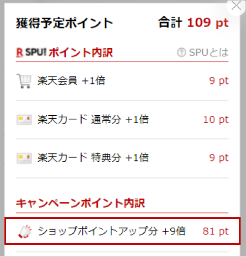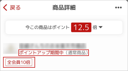 「今この商品はポイント〇倍」についてページの上部にお買い物で獲得できるポイント倍率が表示されます。 表示されるポイント倍率の内訳については、タップすると確認できます。 ※表示されているポイント倍率は目安です。実際に付与されるポイント数は各キャンペーンのルールに基づいて計算されます。各キャンペーンルールをご確認ください。